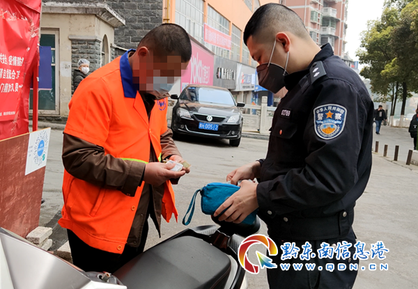3月16日下午,凱里市公安局交警大隊交警李彬、游超駕駛警車經過寧波路理想家園路口時,一名環衛工人跑了過來,“警察同志,我撿到一個錢包,原地等了一會兒也沒有等到人來認領,我不知道怎么辦,就錢包交給你們吧!”