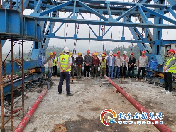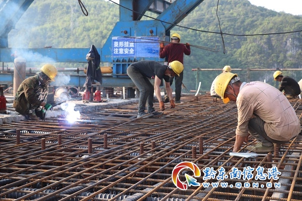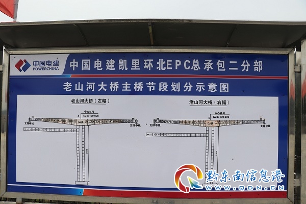 貴州凱里環城高速公路北段項目全長73.1公里,橋隧比為56%,全線共有清水江大橋、老山河大橋、羊老河特大橋3座剛構橋。老山河大橋左右幅全長均為633.6米,為全線控制性橋梁之一,橋梁8號主墩墩身高81米,此次澆筑的橋梁左幅邊跨合攏段長2米,梁高3.4米,橋面寬度12.75米,底板寬7米,翼緣懸臂長2.875米,頂板厚30厘米,底板厚32厘米,腹板寬度50厘米,設計澆筑C55混凝土23.1立方米。