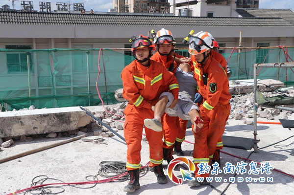 特勤站到達現(xiàn)場后,只見一名工人雙手緊緊抓住綁在鋼管架上的繩索,兩邊靠著兩名工友使用鋼管支撐,才不至于跌落到樓下,情況十分危急。根據(jù)現(xiàn)場情況,指揮員立即決定使用起重氣墊將倒塌的墻體抬起,再抬出被困人員。消防指戰(zhàn)員將安全腰帶固定于工人身上,做好安全防護后,立即展開救援。經(jīng)過指戰(zhàn)員十多分鐘的緊張救援,被困人員被成功救出,在醫(yī)生簡單處理之后抬上救護車。