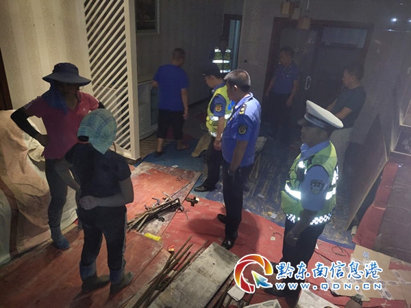 8月18日晚,大十字街道接群眾舉報:凱里市金泉國際新城一頂樓違建戶,又在施工違建。大十字街道執法中隊立即出動,到現場制止施工,遣散工人,并收繳所有施工工具,對違建戶進行了嚴厲的批評教育。