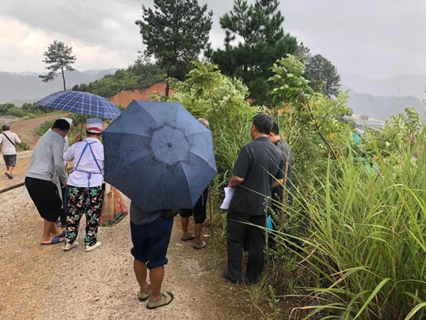 由于修建高速公路征收“洞多”(地名)林地產生征地補償款,從而引發本案。因案件為山林糾紛,經聯系當事人后,案件承辦法官決定組織各方當事人共同前往爭議地進行現場勘測。現場雜草叢生,界線模糊不清,行政審判干警深入山林中仔細核實查看。現場查看尚未結束,突然天降大雨,干警們一鼓作氣對現場勘測完畢,并在爭議地旁邊工棚躲雨期間繪制現場草圖及制作勘測筆錄。從上午10時至中午14時,經四個小時的現場勘測,了解到該案原告吳某本與第三人吳某財、吳某華為兩個不同村集體成員,對爭議地“洞多”(地名)均有《凱里縣自留山證》,第三人吳某財、吳某華證件范圍的山林包含在原告吳某本的證件范圍內。