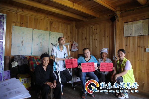 本網訊 日前,黎平縣洪州鎮(zhèn)侗村電子商務服務站經理楊凱蘇與黎平東方文化傳媒公司黨支部指導員一行3人來到巖洞鎮(zhèn)新洞村,將杭州、北京等3名愛心人士捐助的7600元現金送到即將到浙江特殊教育學院讀書的林昌玉的手中。他們的母親和奶奶感激萬分。與此同時,經楊凱蘇牽線搭橋7000元幫助的黎平一中考生石凱東完成學業(yè),并考取廈門大學工科實驗班,同時楊凱蘇還跑上跑下還為他爭取到習酒助學金5000元到大學的報名學費。