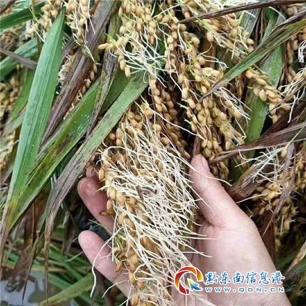 本網訊 眼下正是稻谷成熟待收之際,入秋后受持續陰雨天氣的影響,貴州省黃平縣紙房鄉水稻倒伏,發芽現象普遍嚴重。