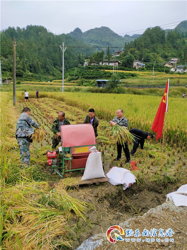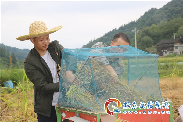 “我家有3個人,兒子常年在外面打工,家里現在只剩下我和老伴2個老人,以前都是我們請寨鄰和我們一起幫忙打米,哪個曉得今年一直都在下雨,我們都不曉得該怎么辦,還好這兩天有政府這些干部幫忙,真的,非常感謝他們!都是我們老百姓的好干部!”向心村村民段居貴一邊捆著稻谷一邊笑著說道。
