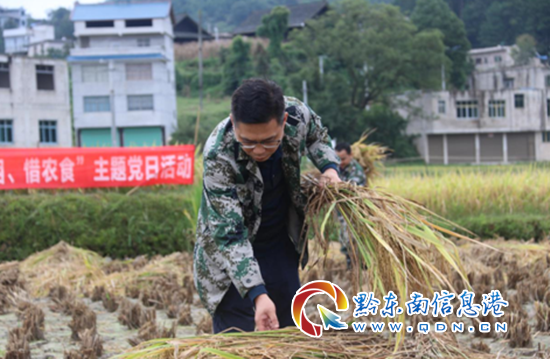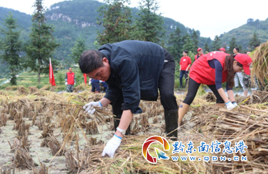 凱里市人大常委會副主任、旁海鎮(zhèn)脫貧攻堅指揮所副指揮長張躍強(qiáng)深入田間地頭進(jìn)行督查指導(dǎo),親身上陣幫助農(nóng)民搶收秋糧。