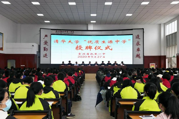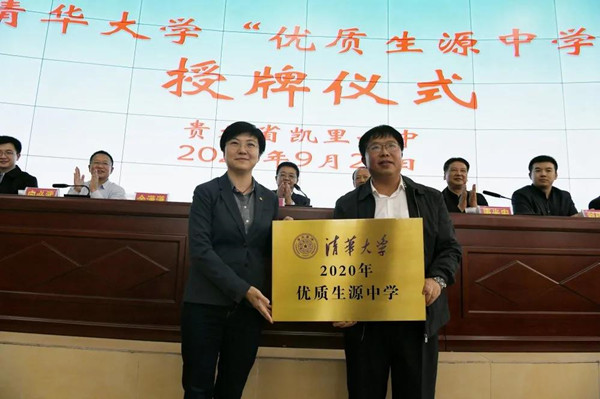 在與會領導、嘉賓和師生們的共同見證下,清華大學招生辦公室主任余瀟瀟向凱里一中授予“清華大學優(yōu)質(zhì)生源中學”牌匾,并以此充分肯定凱里一中多年來持續(xù)穩(wěn)定的“拔尖人才”培養(yǎng)成績。