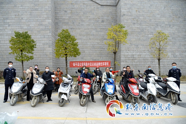在發還現場,前來認領摩托車的車主在完善相關手續后,將被盜摩托車領回。愛車失而復得,喜悅之情溢于言表,紛紛向民警表示由衷的感謝,給予黎平公安高度贊揚。
