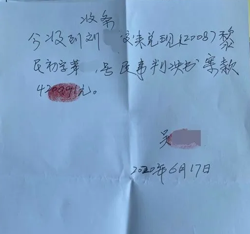近日,迫于失信壓力,被執行人劉某某主動向黎平法院聯系,表示愿意主動支付案件賠償款給吳某某,但沒有吳某某的聯系方式,希望黎平法院執行干警能通知申請人吳某某到法院來,自己交付案款給吳某某。2020年6月17日,劉某某主動將4200.91元案款交付到吳某某手上,法院依法解除被執行人劉某某的失信名單,申請人也終于在11年后順利得到了自己應有的賠償。