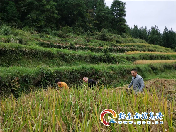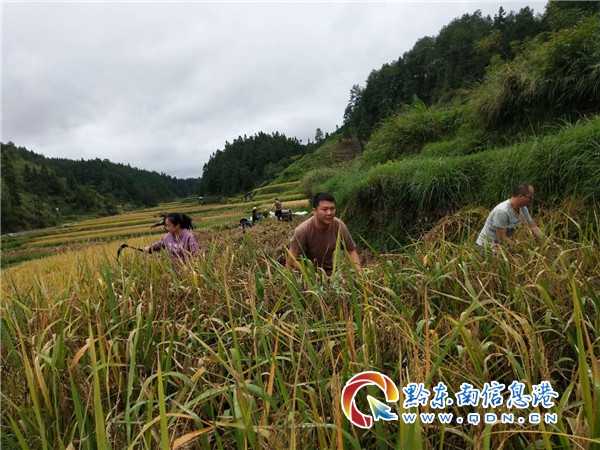 在九潮鎮寶寨村,九潮鎮衛生院組織干部職工自帶勞動工具幫助缺乏勞力的農戶搶收;黎平縣中醫院自覺履行幫扶職責,積極組織幫扶干部發揮先鋒模范作用,深入田間地頭幫助貧困群眾、弱勢群體搶收。同時,為搶抓時機,該院在寶寨微信群里每天轉發天氣預報,將“晴雨表”送到群眾手中,指導群眾抓住“陰雨停歇的空擋”,做好搶收戰備,打好搶收戰役。