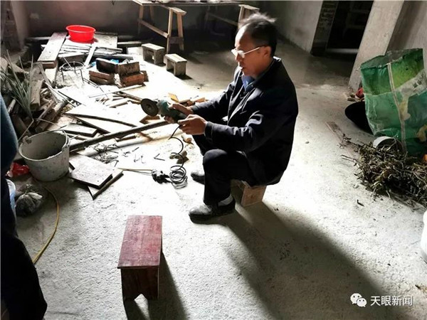 為了制作鞭子,爺爺又騎著電瓶車到三公里外的山上砍來棕樹葉。