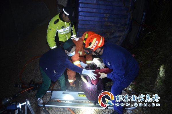 救援人員到達(dá)事故現(xiàn)場后,經(jīng)偵查發(fā)現(xiàn):事故車輛為一輛載滿沙石的大貨車側(cè)翻于路中央,副駕駛一側(cè)朝下,由于撞擊導(dǎo)致車頭嚴(yán)重變形,駕駛室車門無法打開,1名老人被卡在變形的駕駛室無法動彈,由于老人被困時間較長,加上頭部受傷老人已經(jīng)意識模糊、吐字不清,情況十分緊急。