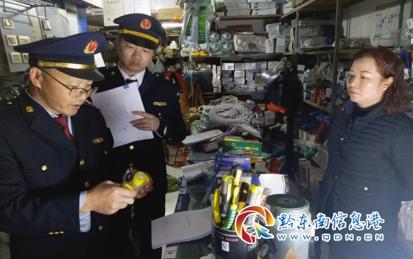 圖為執法人員向經營者宣傳電氣產品及檢查場面