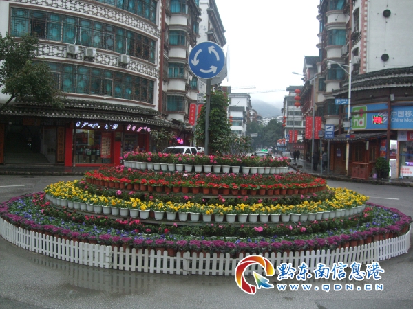 1月14日,筆者走進雷山縣城幾條街看到:雷山一中→雷公山大道→縣醫(yī)院→教廠壩→大十字→大廣場→雷山三中;縣信用聯社→縣民宗局(二橋)→七六四→縣木鼓廣場;縣農機中心→縣汽車站→大十字→望豐路口→返鄉(xiāng)創(chuàng)業(yè)一條街→縣氣象局→國稅局→丹江派出所;雷山二中→交警大隊→郎當河口→蚩尤大道→陶堯大橋等幾條主要路段沿街及大、小廣場周圍和8個鄉(xiāng)鎮(zhèn)都懸掛了6000盞(其中,縣城4000盞、鄉(xiāng)鎮(zhèn)2000盞)大紅燈籠。同時,在縣城大、小廣場,縣房產局門前十字路口轉盤和苗都公館門口轉盤等地,擺放了迎春花盆20000盆,扮靚了城鄉(xiāng),迎接庚子年新春佳節(jié)到來。這是節(jié)前雷山縣市政部門為了給廣大市民群眾營造一個歡樂、祥和的節(jié)日氛圍,為城鄉(xiāng)增添了濃濃的異彩。