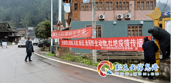 五是筑牢思想意識防線。在進出保護區(qū)的重要路口設置提示標志。雷公山管理站在檢查站、上雷公山山頂路口設置“關于疫情防控期間禁止進入雷公山國家級自然保護區(qū)的通告”提示牌,并安排人蹲守勸導;懸掛“全面禁止禁止獵捕、買賣、販運、食用野生動物,杜絕疫情傳播”橫幅11幅;野生動物救護點在救護場所門前設置“新冠狀病毒感染肺炎商情防控期間,嚴禁一切外來人員進入野生動物救護點內”的警示標志;各管理站向轄區(qū)印發(fā)及張貼《貴州雷公山國家級自然保護區(qū)管理局關于全面禁止獵捕、出售收購、經(jīng)營利用、運輸野生動物的公告》159份。信息中心利用15套宣傳教育系統(tǒng)、2個大型顯示屏、微信公眾號、職工QQ群、護林員工作群等網(wǎng)絡渠道宣傳疫情防治知識和防控要求,進一步提高疫情群防群控覆蓋面,筑牢思想意識防線,助力新冠肺炎阻擊戰(zhàn)。