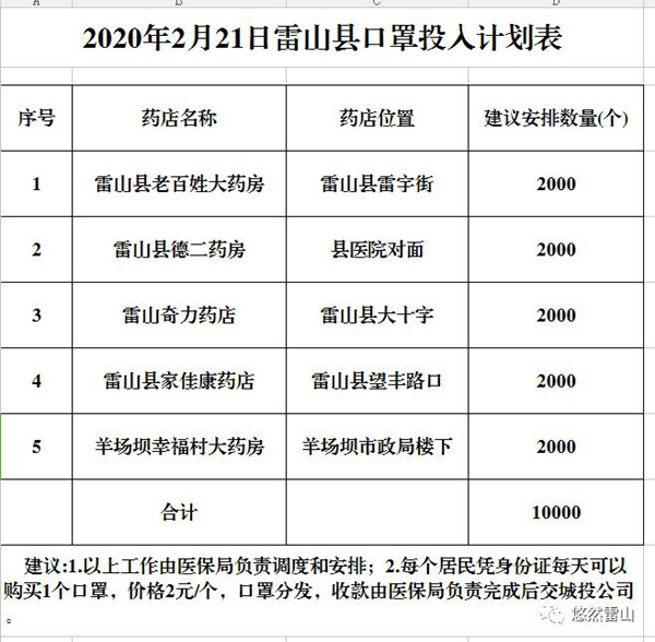 今日,雷山縣 1 萬個口罩投放市場,這些地方可購買