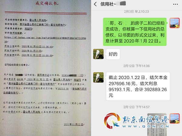 原來,石某文、陳某二夫婦與雷山縣信用社發生了金融借款合同糾紛,在雷山法院判決執行后,夫婦二人始終不按期履行生效裁判文書確定的39萬余元還款義務,于是雷山信用社向該院提出申請對夫婦二人共有的一套借款抵押住宅進行查封、評估并司法拍賣,拍賣完畢后,該套房產落到了買受人張某坤手中。在這春節團聚和抗擊疫情的特殊時期,夫婦二人終于幡然醒悟,多次電話請求愿意借款償還該筆借款,希望法院退回這套房產。考慮到被執行人居住問題,又有意愿回購房屋,隨后,該院執行干警通過電話、微信等線上方式與案件各方當事人進行多次溝通,最終夫婦二人與買受人張某坤達成書面協議,在賠償完競買費用及貸款利息共計42萬余元后,該房產仍歸二人名下。目前該案已圓滿執結。