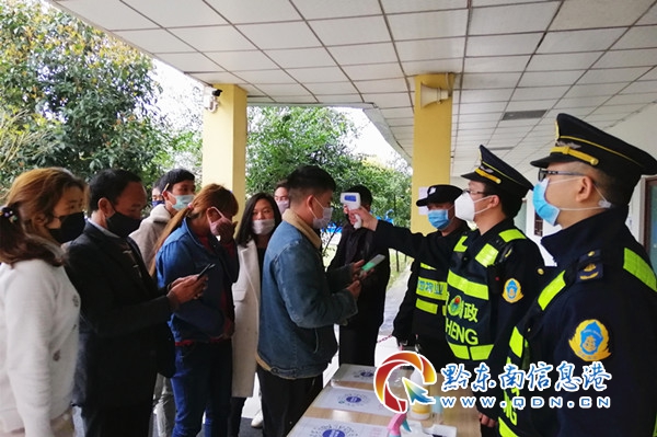 在G60滬昆高速三棵樹服務區,貴州省凱里高速公路管理處雷山路政執法大隊抗“疫”保通青年突擊隊的隊員一邊維持著現場的秩序,一邊協助服務區防疫人員開展體溫檢測。連日來,他們一直堅守崗位,用無限的青春戰斗力貼心護航復工返程安全。