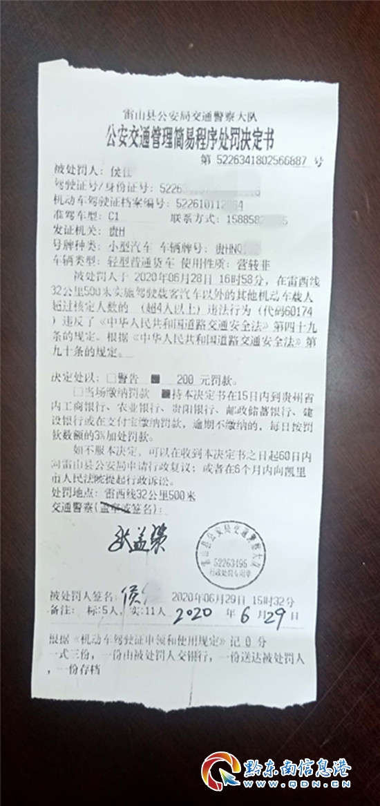 6月28日,雷山縣公安局交通警察大隊接到網友多條舉報,稱有人發布的抖音視頻中有超員的交通違法。接到舉報后,民警立即查看該視頻,并對該線索問題展開調查,查詢到該車駕駛人侯某某的信息后,及時將涉事侯某某傳喚到公安機關接受調查。