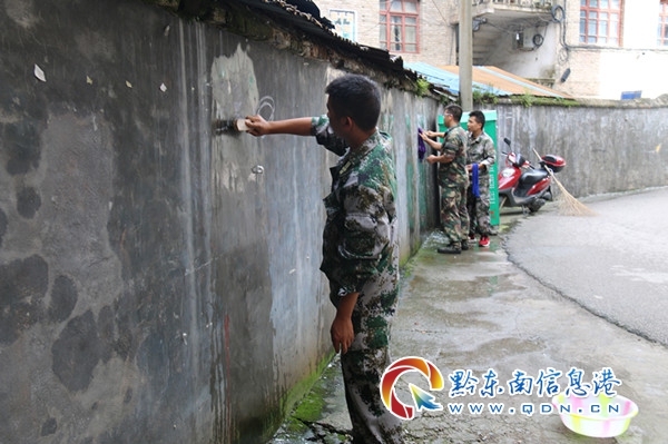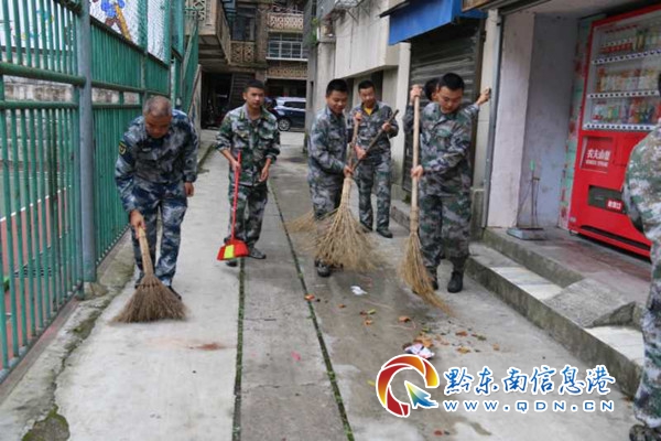 本網(wǎng)訊 8月10日,雷山縣人武部組織全體官兵開展“文明在行動,滿意在貴州”活動,在居民小區(qū)和人行街道整治環(huán)境衛(wèi)生。清理清洗野廣告、打掃及搬運邊溝廢棄物、雜草、建筑材料等垃圾的整治,不留衛(wèi)生死角。