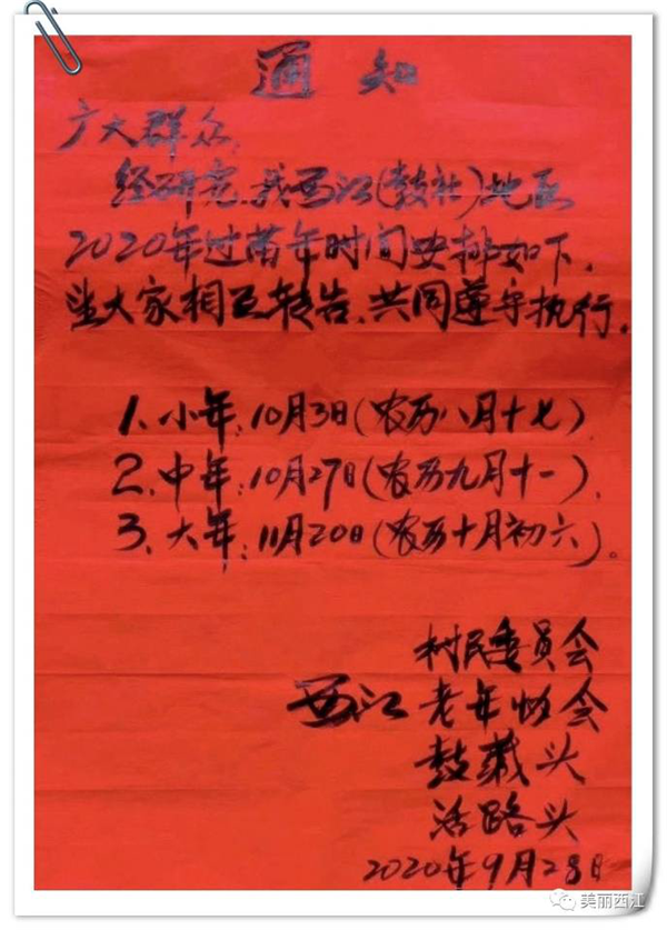 西江的苗年分為小年、中年和大年,沒有固定的日期,視當年具體情況而定。在西江,苗族傳統歷法是一年十個月,每年的農歷十月左右就是一年的年終歲周,苗年便安排在這個時間段,但具體時間需要西江民間宗族宗教管理領袖“鼓藏頭”與民間農事管理領袖“活路頭”,以及老年協會共同商議,鼓藏頭定奪后向外宣布。就隆重程度而言,大年最隆重,要過10天左右;中年次之,過4-5天;小年過1-2天。過苗年,首先要先確定大年的時間,大年相當于春節的除夕,是整個苗年的高潮。大年時間確定后,往前推25天便是過中年的日期;中年往前推25天是過小年的日子。西江苗寨苗年大年時間一般選在農歷十月的第一個“卯”日,是為了紀念最早遷徙到西江的祖先之一“卯公”。