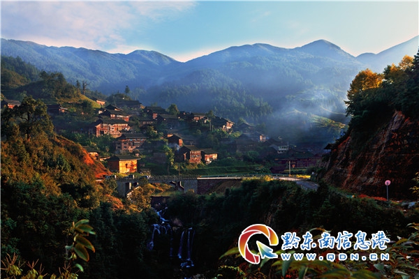 烏東村位于雷山縣城的東北面,坐落于雷公山中段,距縣城19.6公里,海拔1306米,在寨中翹首可見矗立于云遮霧繞中的雷公山頂峰。寨子四面環山,綠竹翠擁,山上青松翠柏、古木參天、林蔭綠郁,站在高處望烏東苗寨,山青水秀,吊腳木樓鱗次櫛比,錯落有序,清晨幾絲陽光照射下,炊煙裊裊,美似仙境,真所謂錦繡山河,風光這邊獨好。小橋流水,河畔綠樹,連接一幢幢吊腳樓的鵝卵石小徑在雨霧里泛著瑩瑩水光。這里是雷(山)毛(坪)公路通過寨旁而去;凱(里)雷(山)高速公路黃里收費站,轉車黃里至雷公山旅游公路穿寨而過,交通十分便捷。