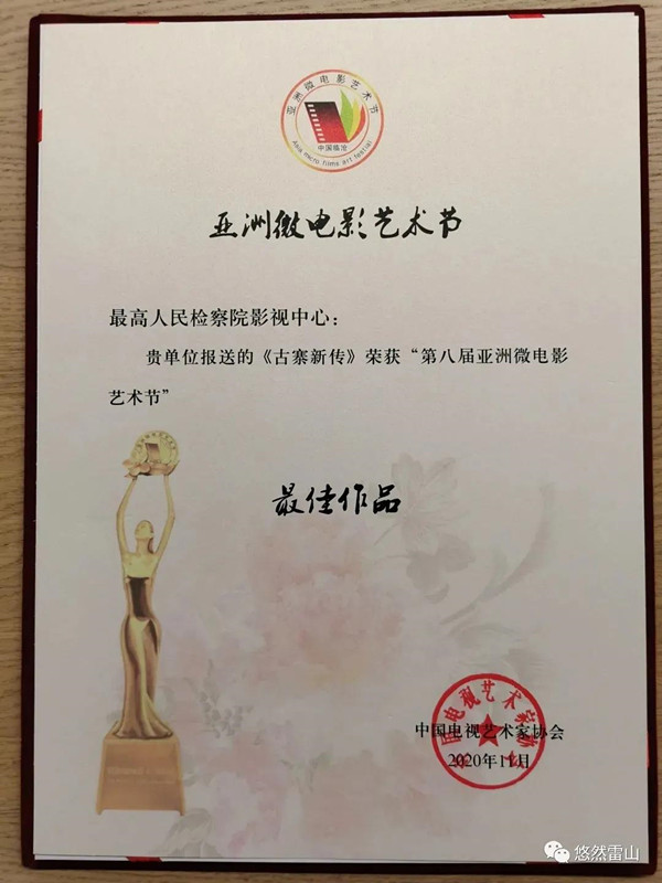 第八屆亞洲微電影藝術節最佳作品獎:《我是檢察官·古寨新傳》