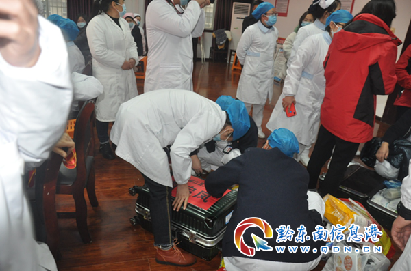 出發(fā)前,麻江縣醫(yī)務(wù)人員紛紛前來(lái)幫忙整理行囊,一句句叮囑,一個(gè)個(gè)擁抱,給出征隊(duì)“戰(zhàn)友”加油鼓勁,希望她們?cè)缛掌桨矚w來(lái)。