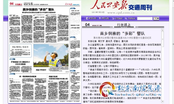 支隊充分利用《人民公安報?交通安全周刊》、《法制生活報》“交通安全周刊”欄目、《貴州民族報》“貴州交警特別報道”欄目,以及黔東南電視臺“法治黔東南”欄目等宣傳平臺開展典型宣傳,確保先進(jìn)典型同步發(fā)現(xiàn)、同步推出、同步宣傳,營造強有力的宣傳聲勢。如:《胡光偉:讓警徽在“千戶苗寨”閃耀》在《黔東南日報》(2018年9月20日)刊登同時,還在黔東南電視臺“法治黔東南”欄目進(jìn)行刊播,使典型事跡為群眾所熟知和感動。與此同時,利用新媒體廣泛宣傳。