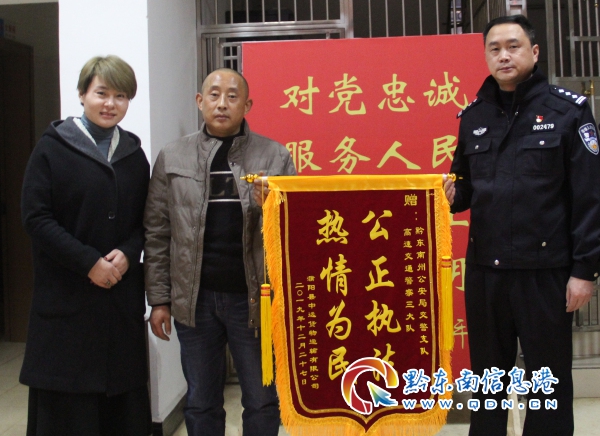 事情發(fā)生八天后,河南省濮陽縣中遠(yuǎn)運(yùn)輸公司特意委派職員,趕到黔東南州交警支隊(duì)高速三大隊(duì)送錦旗表感謝,便出現(xiàn)了文章開頭令人暖心的一幕。(何曉天)