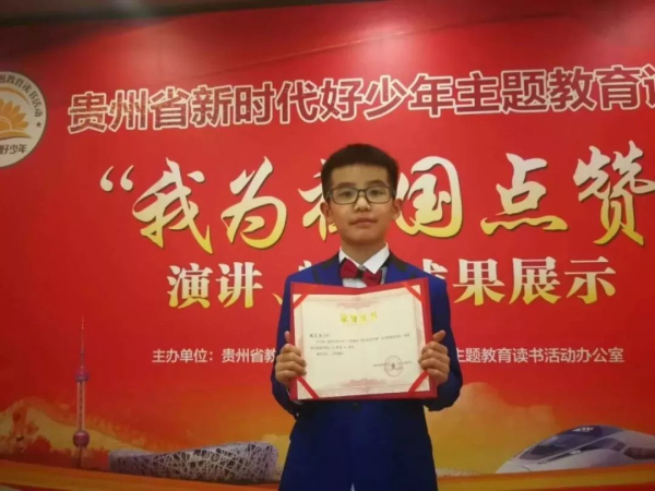 立朗精英班學員顧昱涵代表黔東南州參加貴州省新時代好少年主題教育“我為祖國點贊”讀書教育活動,獲得小學組演講比賽二等獎。
