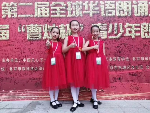 立朗學員劉子媛,吳靜希,吳羨來到首都北京參加曹燦杯比賽,獲得曹燦杯朗誦新星獎項!中央電視臺新聞頻道進行賽事報道。