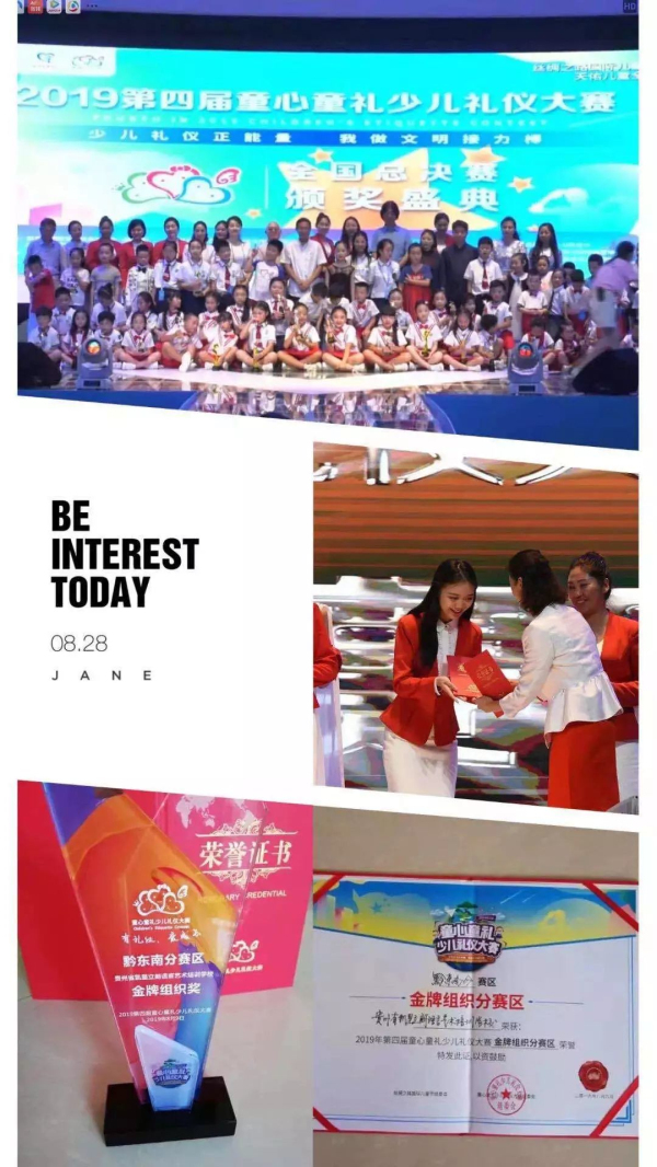 立朗語言藝術(shù)培訓學校第一次參加全國禮儀大賽,鷹隼試翼的立朗寶貝代表黔東南向全國小朋友推介自己的家鄉(xiāng),熱愛我們的民族文化,在西安增長了見識,經(jīng)過五天的研學之旅,立朗的薛李羽涵、賈涵滔、顧博偉、楊雯媛四位小選手獲得分別都獲得了最佳禮儀知識獎,最佳正能量獎,最佳情景實踐和最佳人氣獎的單項獎!由立朗承辦的黔東南分賽區(qū)因此榮獲金牌組織分賽區(qū)的獎項!