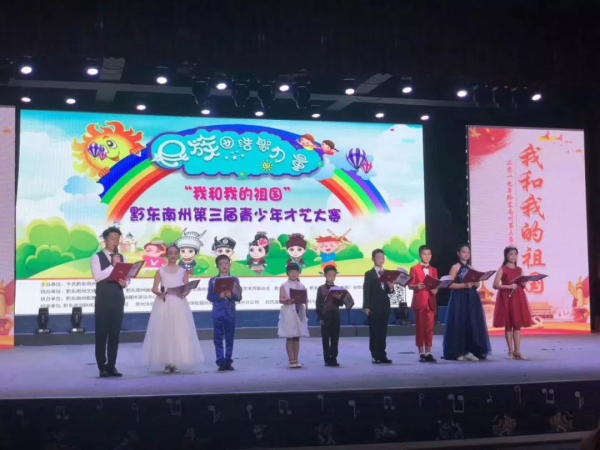 立朗學員參加黔東南州第三屆青少年才藝大賽,顏萊、胡博涵擔任主持人。