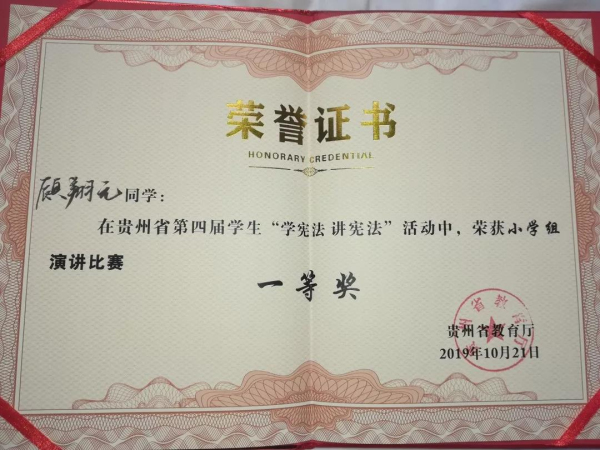 10月21日,由貴州省教育廳主辦、貴州民族大學承辦的貴州省第四屆學生“學憲法 講憲法”活動在貴州民族大學法學院舉行,立朗學員顧翔元獲得小學組一等獎;顏萊獲得小學組三等獎;劉彥君獲得初中組三等獎。