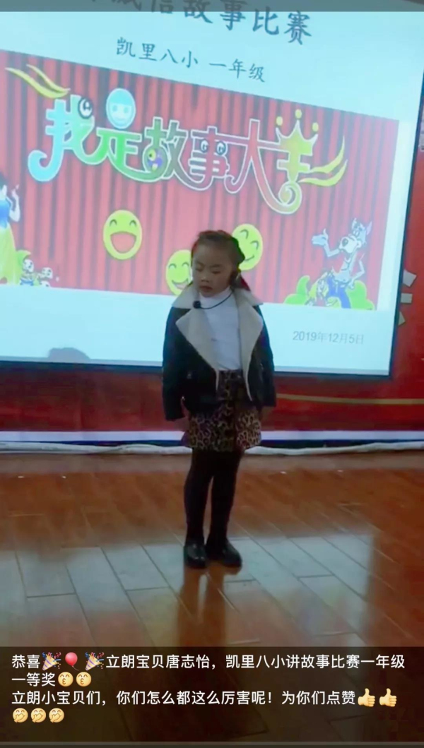 立朗寶貝吳沁芯、唐志怡、顧博偉、黃謙之分別榮獲凱里八小講故事比賽一、二、三年級組一等獎。
