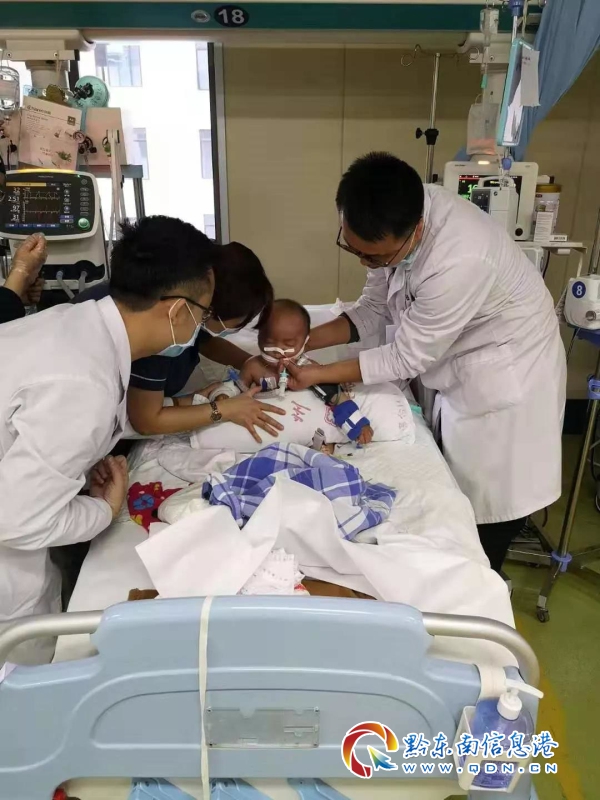 孩子在入院后的第四天逐漸恢復(fù)了意識,脫了呼吸機(jī),摘除了氣管插管。隨著病情一天天好轉(zhuǎn),小家伙開始能哭鬧了,擔(dān)心孩子的哭聲會影響到病房里其他的病人,每天值班的護(hù)士們只能輪流抱著孩子哄,一邊哄孩子一邊完成手上的工作,給小寶貝喂飯、換尿布,自己有孩子的護(hù)士還比較熟練,一些年輕的小護(hù)士也做起了“實習(xí)媽媽”。幾天下來,小家伙對醫(yī)護(hù)人員更依賴了,每天都必須要在各位“護(hù)士媽媽”的懷中才能入睡。經(jīng)過七天的治療和護(hù)理,孩子脫離了生命危險,已轉(zhuǎn)入普通病房,對于綜合ICU的“臨時爸媽”們,孩子的父母非常感激,他們說沒有這些“爸爸媽媽”們,孩子不會轉(zhuǎn)危為安,感謝州人民醫(yī)院的醫(yī)護(hù)人員給了孩子第二次生命。
