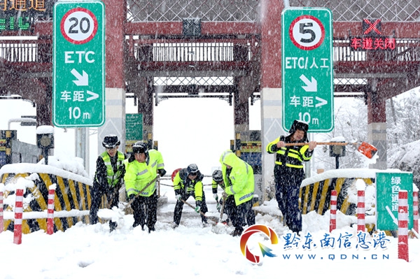(高速先鋒值守人員清理收費站車道積雪)