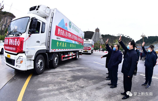 2月17日早8時,隨著州委書記桑維亮的一聲“出發”,黔東南州對口支援湖北省鄂州市的裝有138噸蔬菜、禽蛋、肉類及醫藥物資的12輛大貨車,緩緩駛出凱里東收費站,把我們苗鄉侗寨人民的溫暖送到湖北省鄂州市支援抗擊疫情。(熊明慧、張羅)
