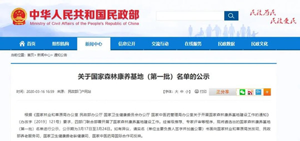 關(guān)于國(guó)家森林康養(yǎng)基地(第一批)名單的公示