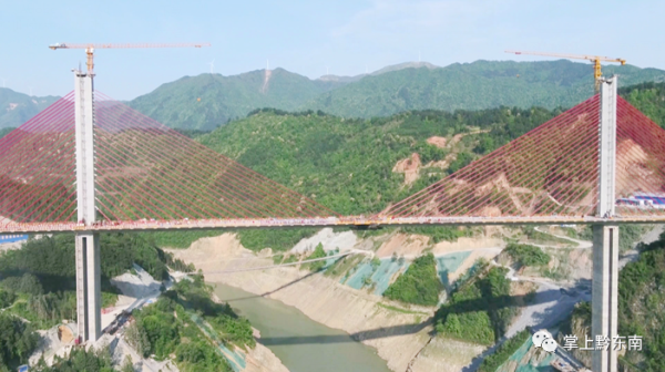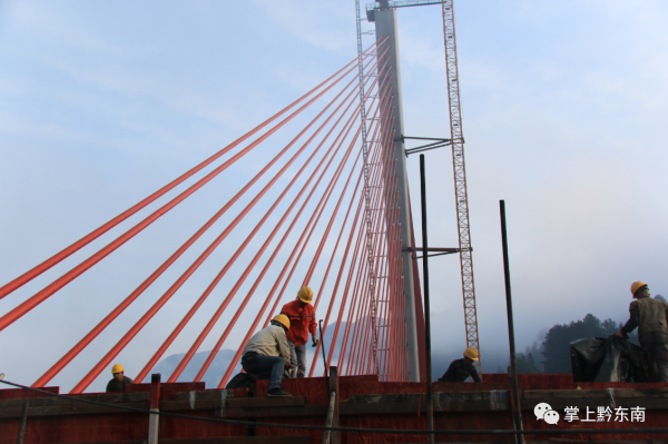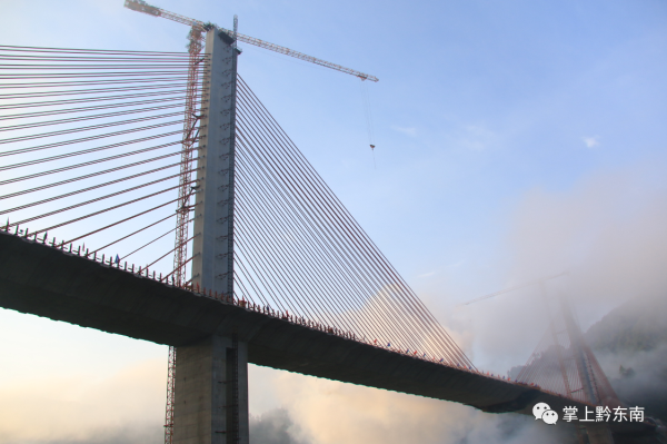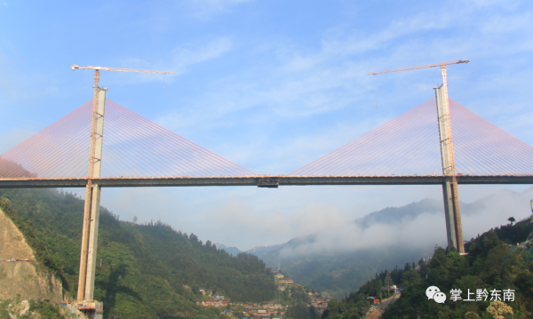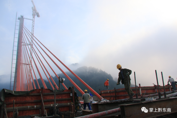 據(jù)了解,清水江特大橋全長540米,主跨300米,橋高184米,橋?qū)?8米,總投資1.78億元,是黔東南州跨度最大的斜拉橋,也是劍河縣唯一的一座斜拉橋。作為國內(nèi)少見的雙塔中央索面預(yù)應(yīng)力混凝土梁斜拉橋,自設(shè)計(jì)之初,便考慮到美觀、經(jīng)濟(jì)、耐用等特點(diǎn),同時(shí)也給修建施工帶來不小難度。