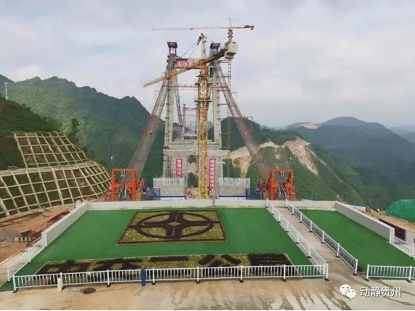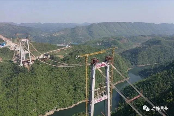 陽寶山特大橋是貴黃高速公路控制性工程之一,為貴州省第一座六車道懸索橋,全長1112米,設計時速100公里,2017年開工建設,預計2021年竣工,由中交二公局二公司承建。該橋系主跨為650米單跨鋼桁梁懸索橋,主纜總重量近4500噸。