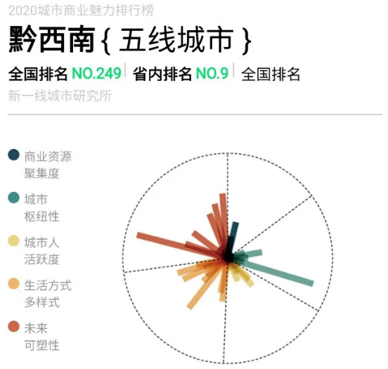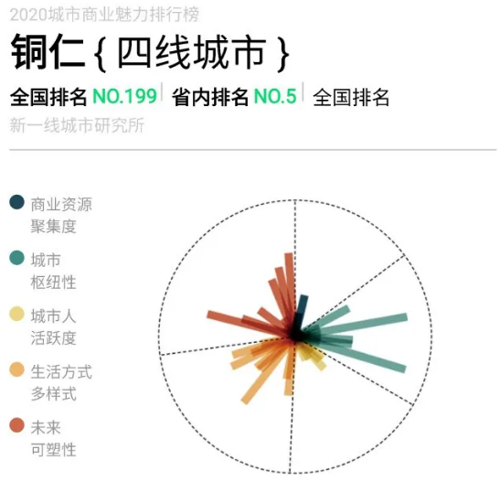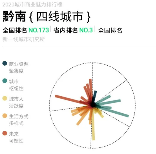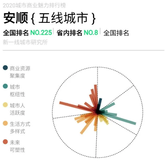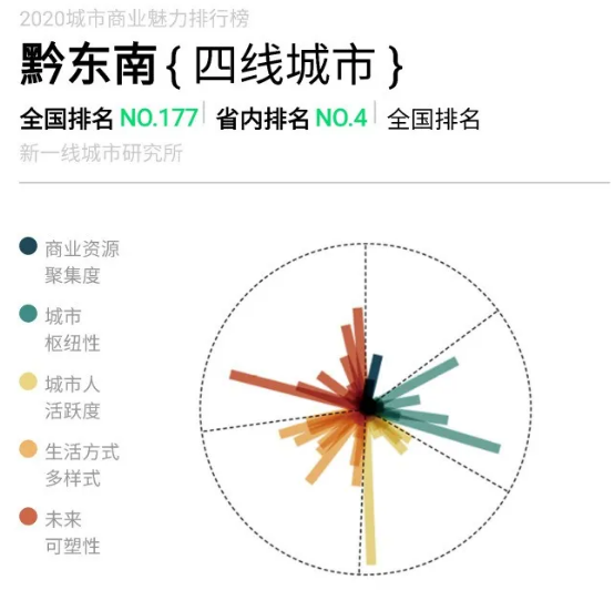 對貴州省來說,二線城市只有省會貴陽,三線城市只有遵義,其余7個市州較為靠后,黔南州、黔東南州、銅仁市為四線城市,其余為五線城市,其中安順較為意外,在貴州省排名倒數(shù)第二。