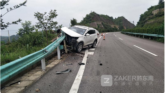 6 月 1 日 17 時 51 分,黔東南州公安局交警支隊高速二大隊值班室接指揮中心轉警稱:" 在轄區余安高速公路 77 公里加 400 米處(小地名:凱里市龍場鎮)發生一起小車撞護欄的交通事故,請立即出警處置。" 接警后,高速二大隊民警立即前往現場處置,同時通知高速路政、高速應急前往救援。