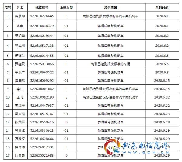 根據《公安部關于修改<機動車駕駛證申領和使用規定>的決定》(公安部第139號令)第七十七條之規定,機動車駕駛證依法被吊銷或者駕駛許可依法被撤銷的,車輛管理所應該注銷其機動車駕駛證。根據規定,現將機動車駕駛證作廢信息公告如下: