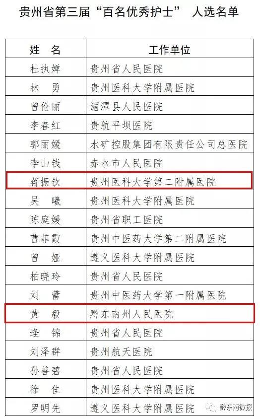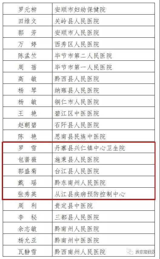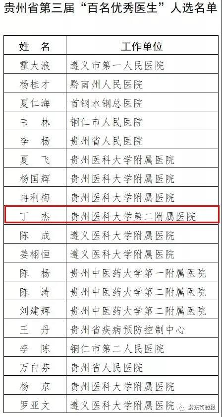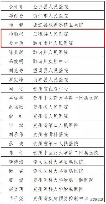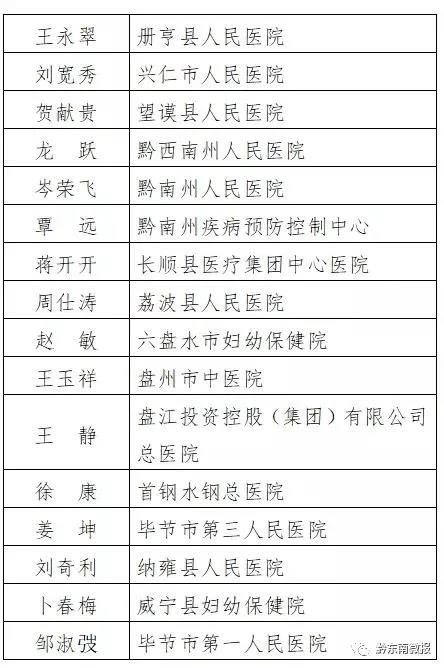 近日,貴州省衛生健康委員會網站發布“貴州省第三屆‘百名優秀醫生’‘百名優秀護士’人選公示”,經省衛生健康委研究,確定了貴州省第三屆“百名優秀醫生”“百名優秀護士”人選,現予以公示。