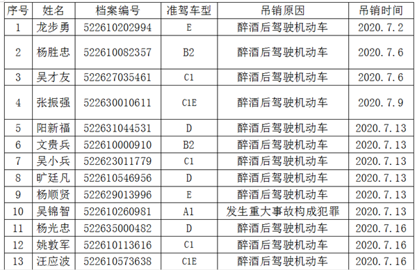 本網訊 根據《公安部關于修改<機動車駕駛證申領和使用規定>的決定》(公安部第139號令)第七十七條之規定,機動車駕駛證依法被吊銷或者駕駛許可依法被撤銷的,車輛管理所應該注銷其機動車駕駛證。根據規定,現將機動車駕駛證作廢信息公告如下: