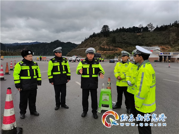12月29日,州公安局黨委委員、交警支隊長肖文斌(左三)深入督導凝保暢工作