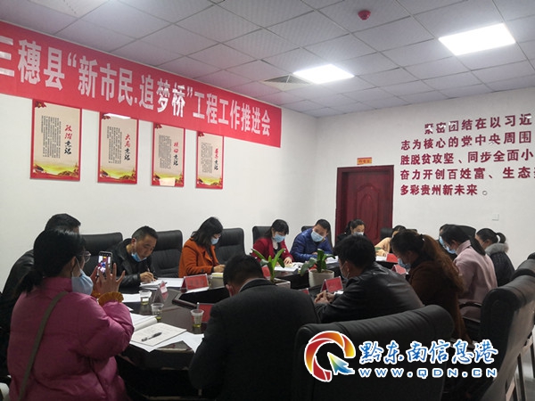 揭牌儀式后,工青婦三家組織聯合召開“新市民·追夢橋”工程工作推進會,三穗縣工青婦組織負責人、文筆街道、武筆街道負責人及6個易搬安置地相關負責人參加會議。會上,與會人員就如何實施好“新市民·追夢橋”工程進行了充分交流并發表意見。會議強調,實施“新市民·追夢橋”工程,是為促進易地扶貧搬遷市民服務全覆蓋,實現安置群眾就業更加充分、收入穩步提高、素質持續提升、精神持續提振、群眾獲得感、幸福感、安全感不斷增強,全面實現由農民向市民轉變。肖梅紅指出,要用實際行動推動易地扶貧搬遷市民融入新生活,成為新市民、實現新夢想。要深入開展關心關愛有關系列活動,以老百姓喜聞樂見的方式,把黨的政策宣講到千家萬戶,激勵引領搬遷群眾感黨恩、聽黨話、跟黨走,并鼓勵市民用勤勞的雙手創造幸福生活。(甘露、陳松)