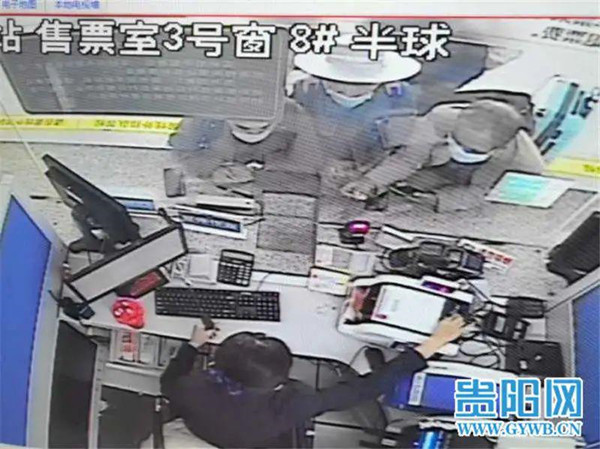 因手機(jī)被男子阻擋,敖某忘記了放在窗臺上的手機(jī),買票后就直接離開了售票廳。米黃色夾克男子隨后也購買了當(dāng)日G5399次列車車票,偷走敖某的手機(jī)立馬離開售票廳,并乘坐列車前往貴陽。