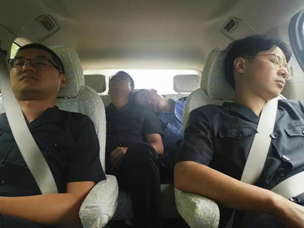 出發時朝陽剛剛升起,歸來時已是晚霞相伴,因一天忙碌的奔波,回程路上,執行干警已疲憊睡著。美好的一天即將結束,明天,我們迎接新的任務再出發!
